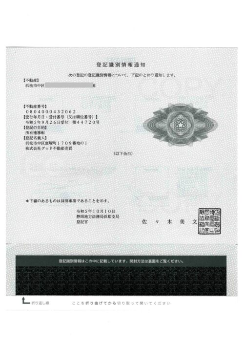 浜松や静岡西部の不動産で、平成19年以降に登記をした方は、こちらが売買の際に必要になります。
